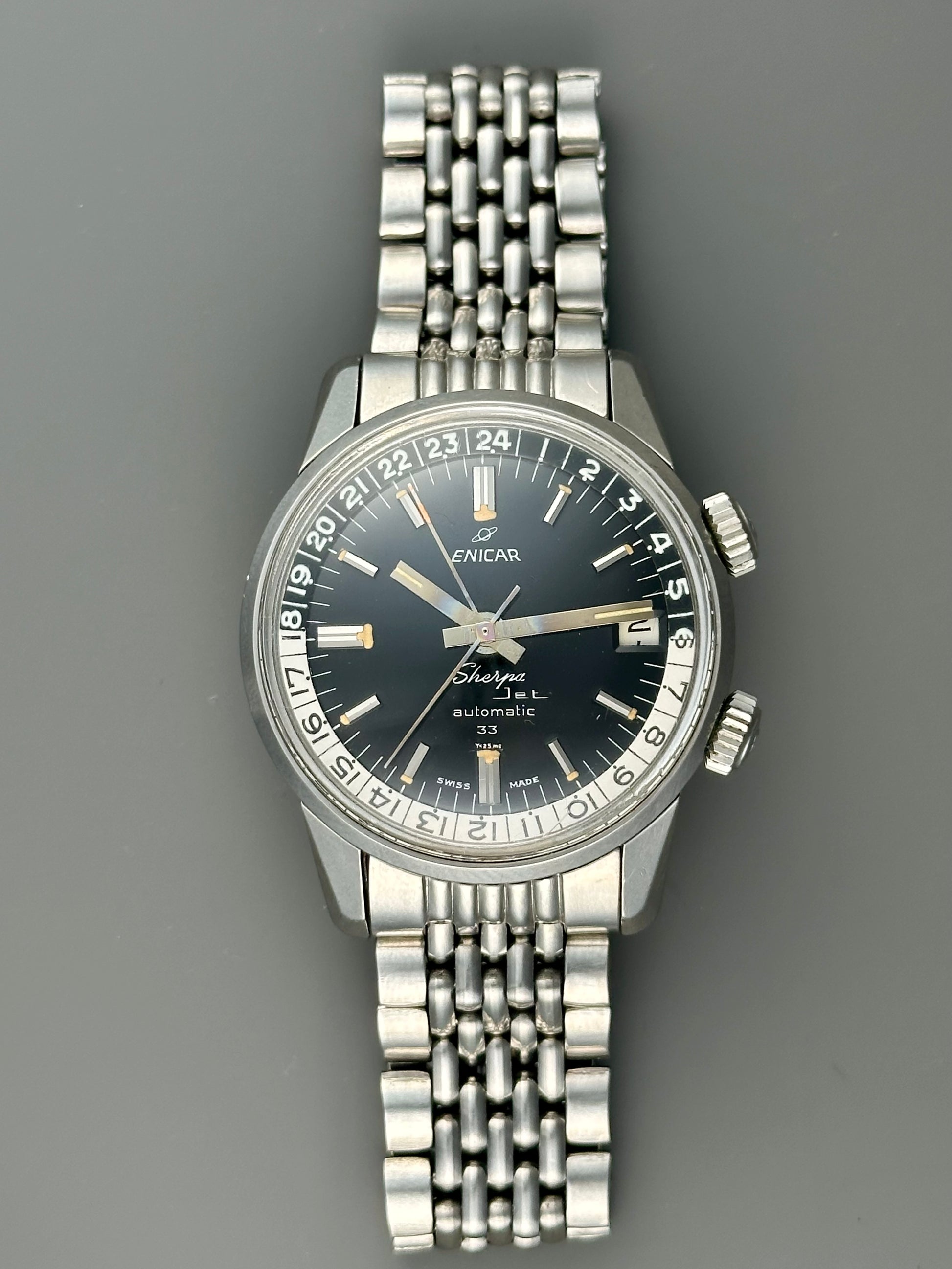 Extremely nice condioned Enicar Jet on its signed beads of rice bracelet. Top Tier!