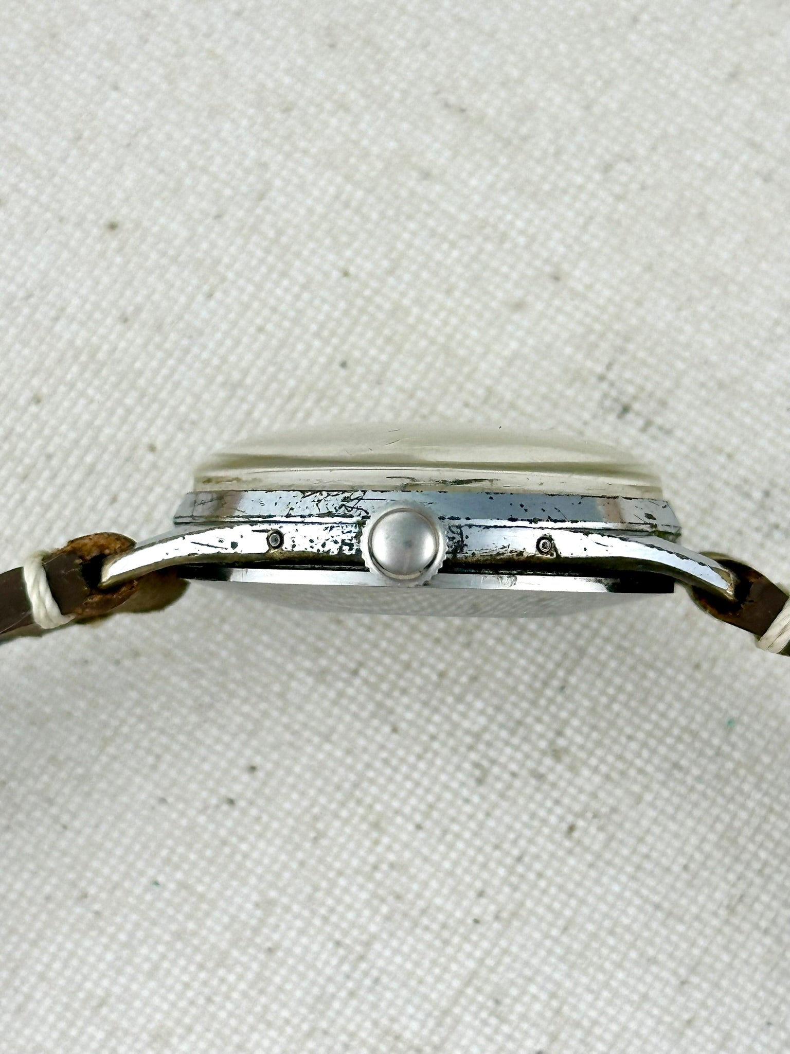 Vintage moonphase with a great dial and all functions working great, the case on this one is a little beat up otherwise known on other websites as "appropriately aged and perfectly pitted and patina'd to match its distinguised life well lived". Ha!