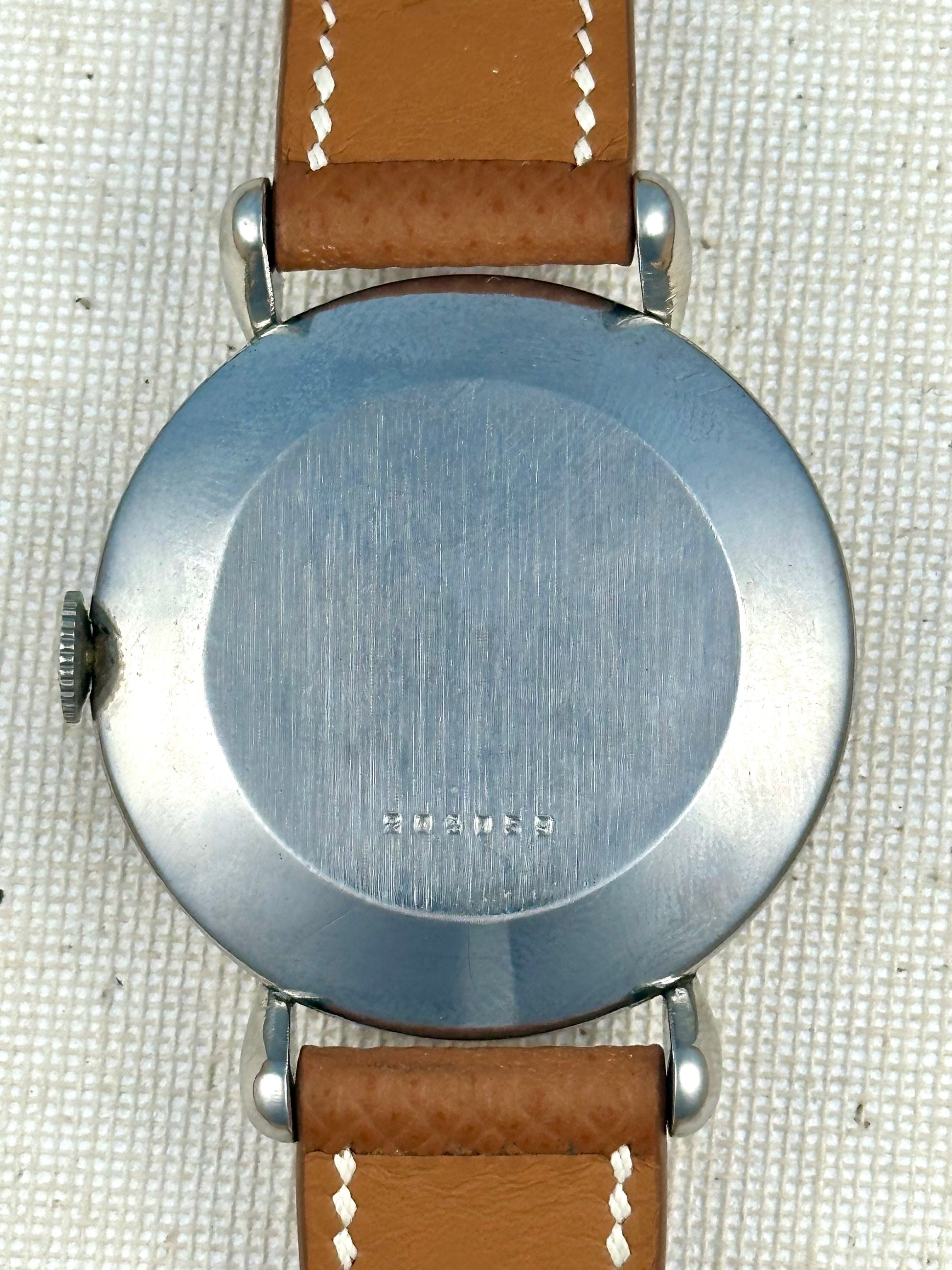 Beautiful teardrop lug JLC in spotless stainless steel. Fresh from full service in October 2025. This is an amazing watch! The dial has an crazy cool gold even patina throughout, and is accentuated with the striking applied indices.