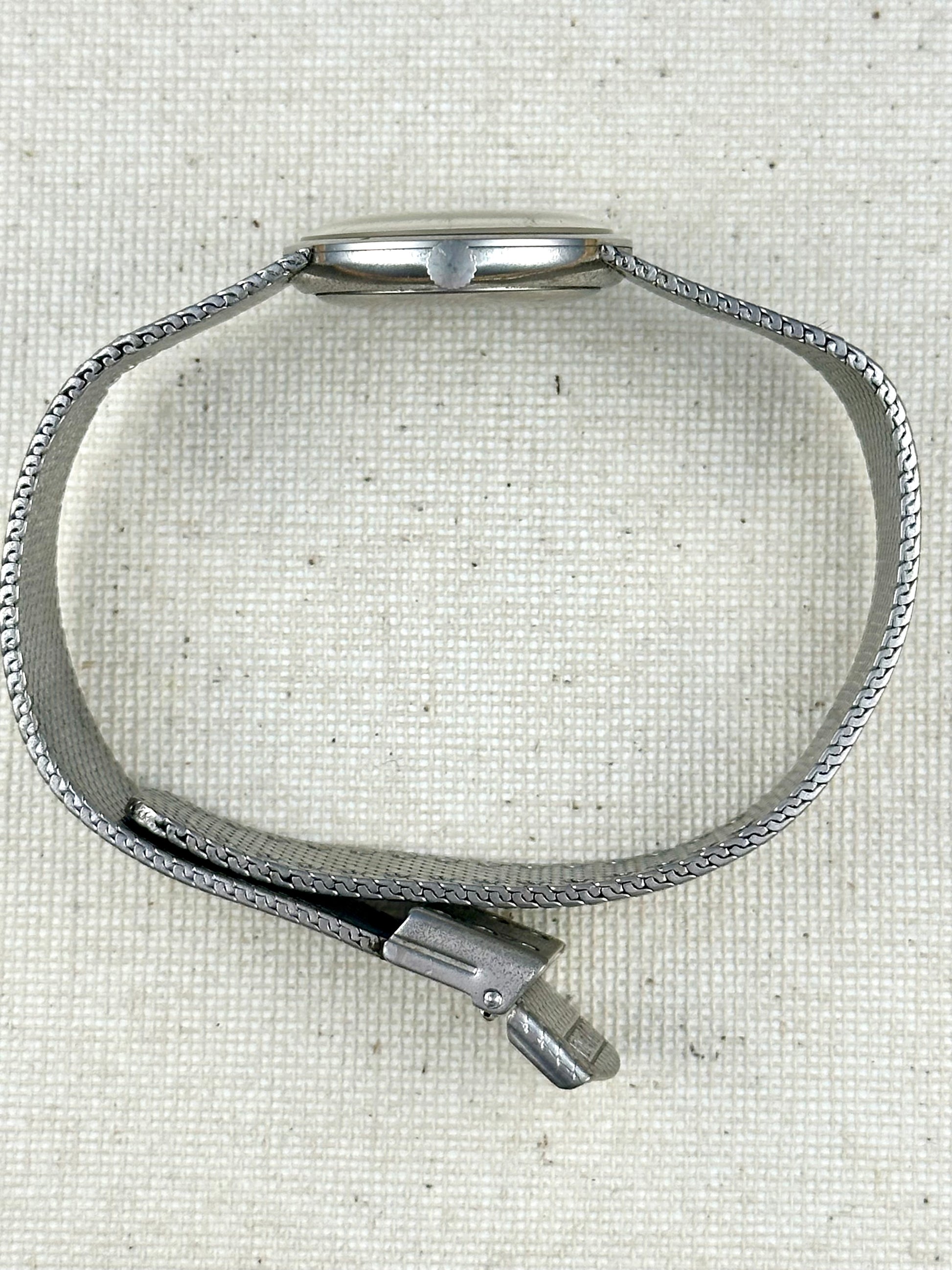 Really nice stainless steel integrated bracelet ladies watch. Super smooth bracelet with flawless dial and a great look. Sexy, just flat out sexy!
