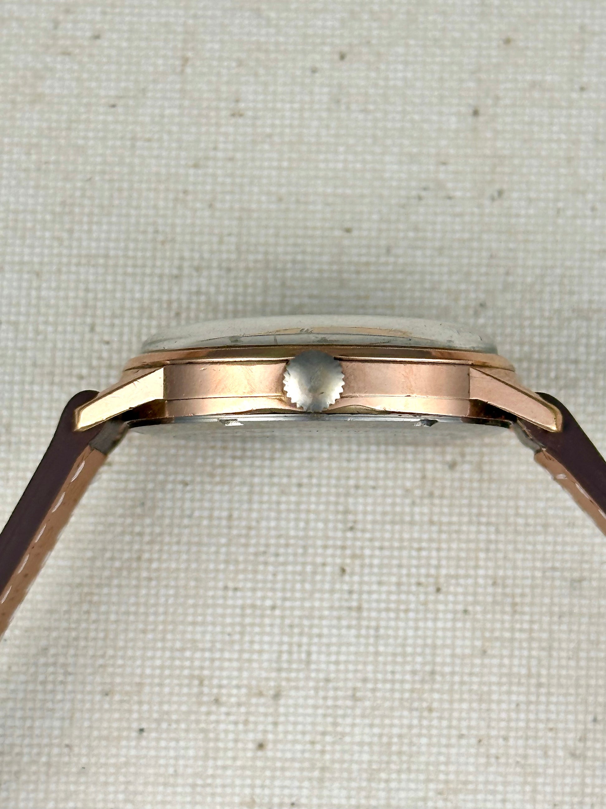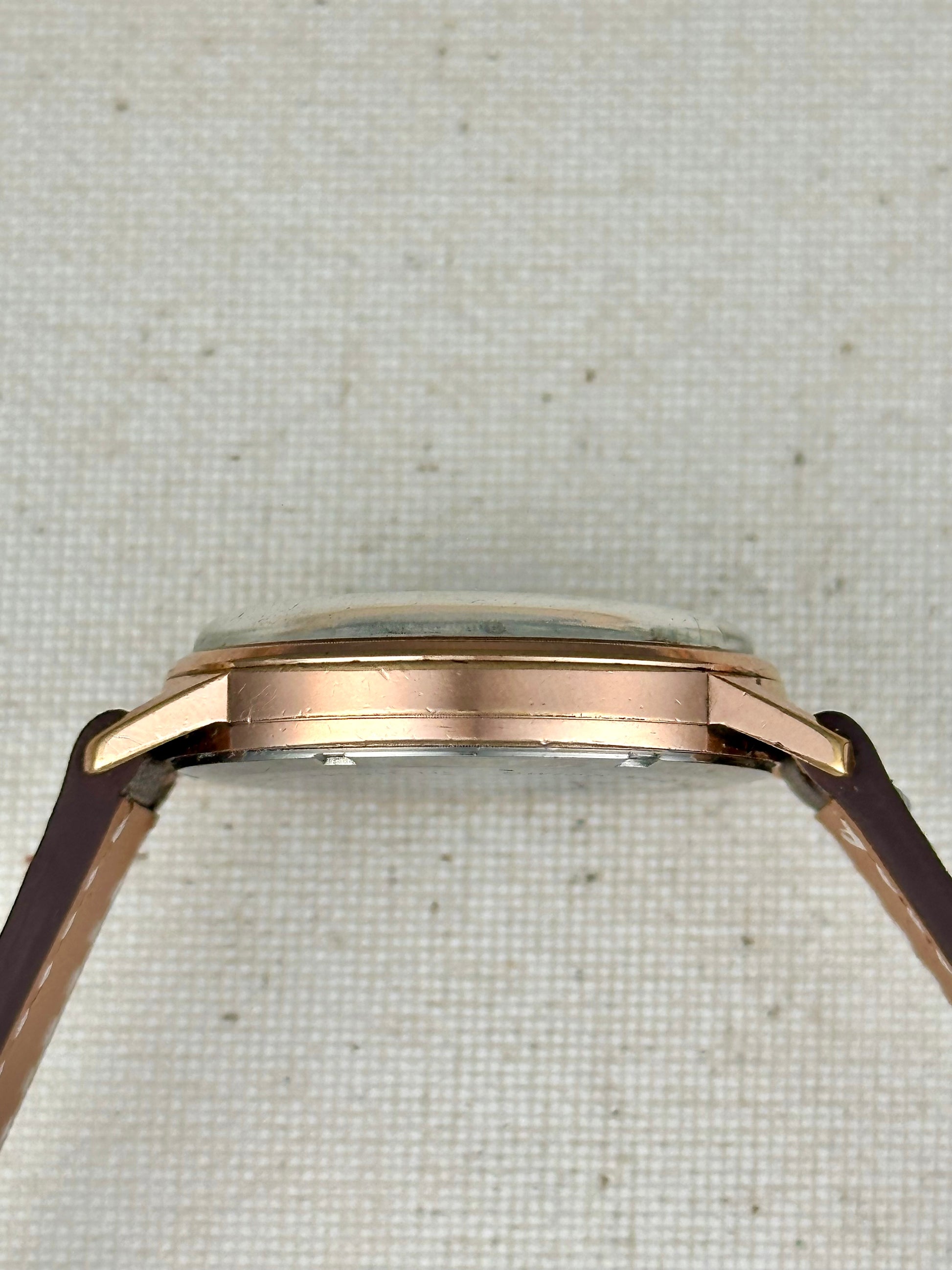 dial is a very cool slate grey color, does have old staining in ceter of dial and trailing down to the 6. Most likely from old service performed where way too much oiling was done!