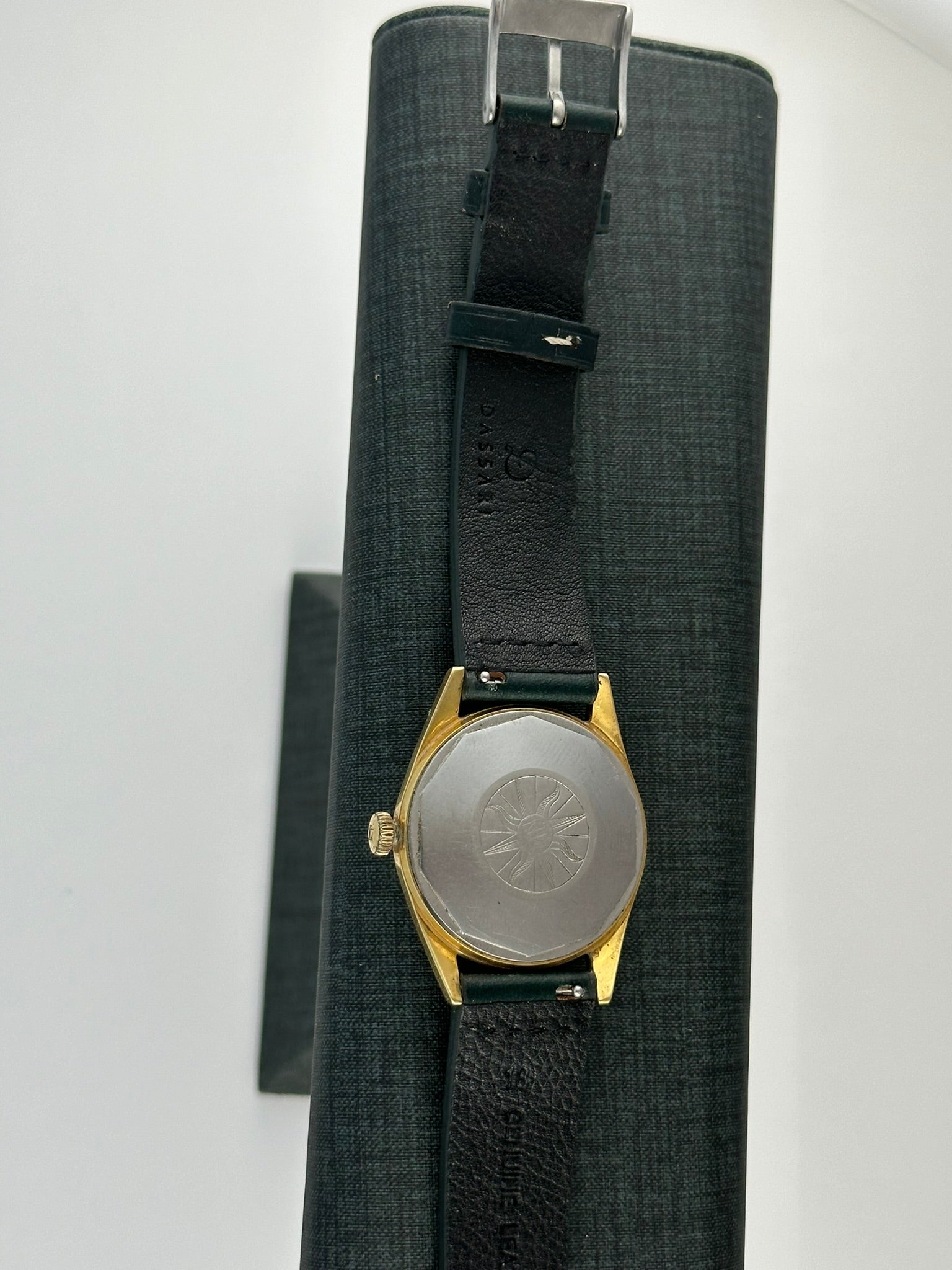 The watch measures 33mm diameter excluding the winding crown and the lugs. The case is gold plated and it is in lovely condition. The signed case back is stainless steel, and it has the Tissot logo inside.