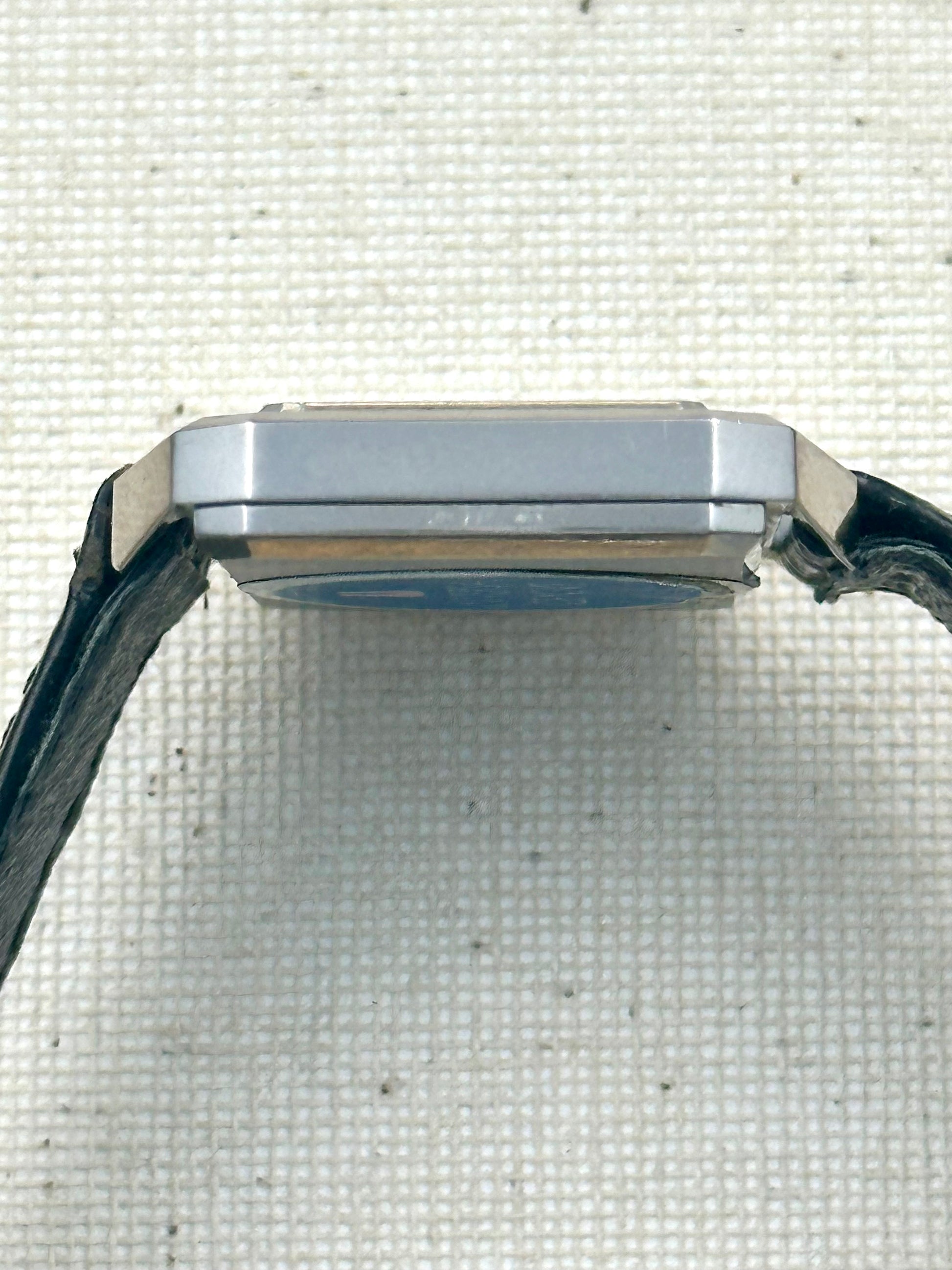 Very nice example in almost NOS condition on original signed leather strap with signed buckle and with caseback sticker intact!