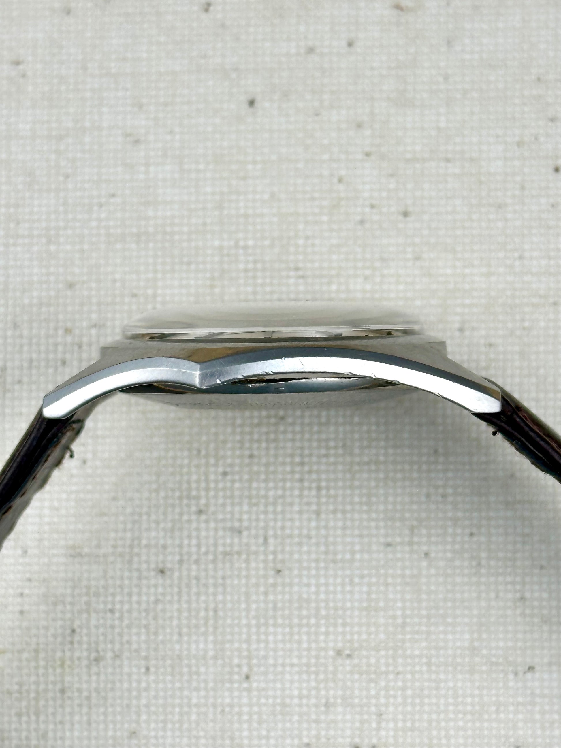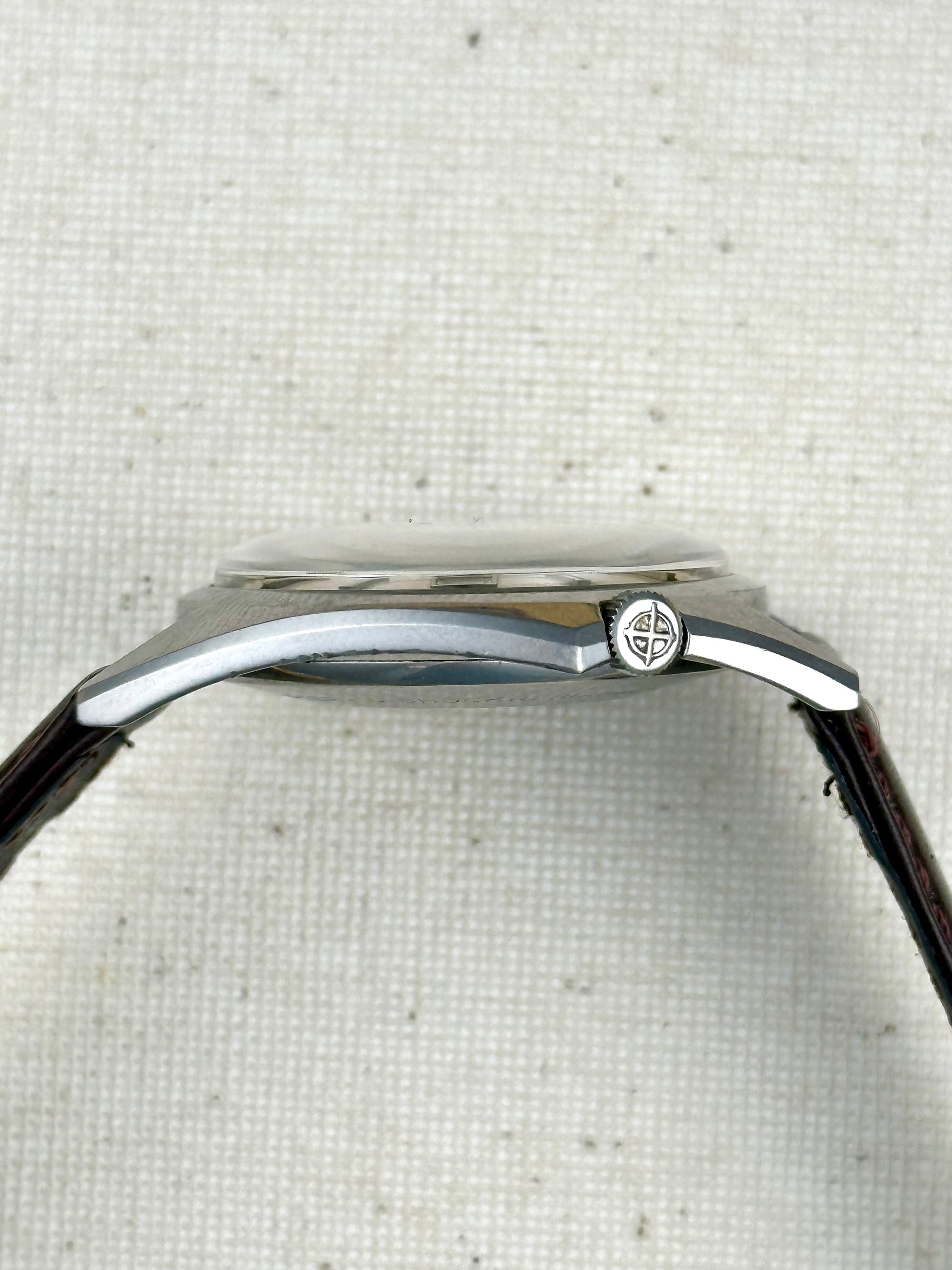 If you've followed us for a bit, you know I love these! Such a great watch with a super cool shape and vibe! This one has a particularily handsome dial in a sector style with a warm patina spilling over face.