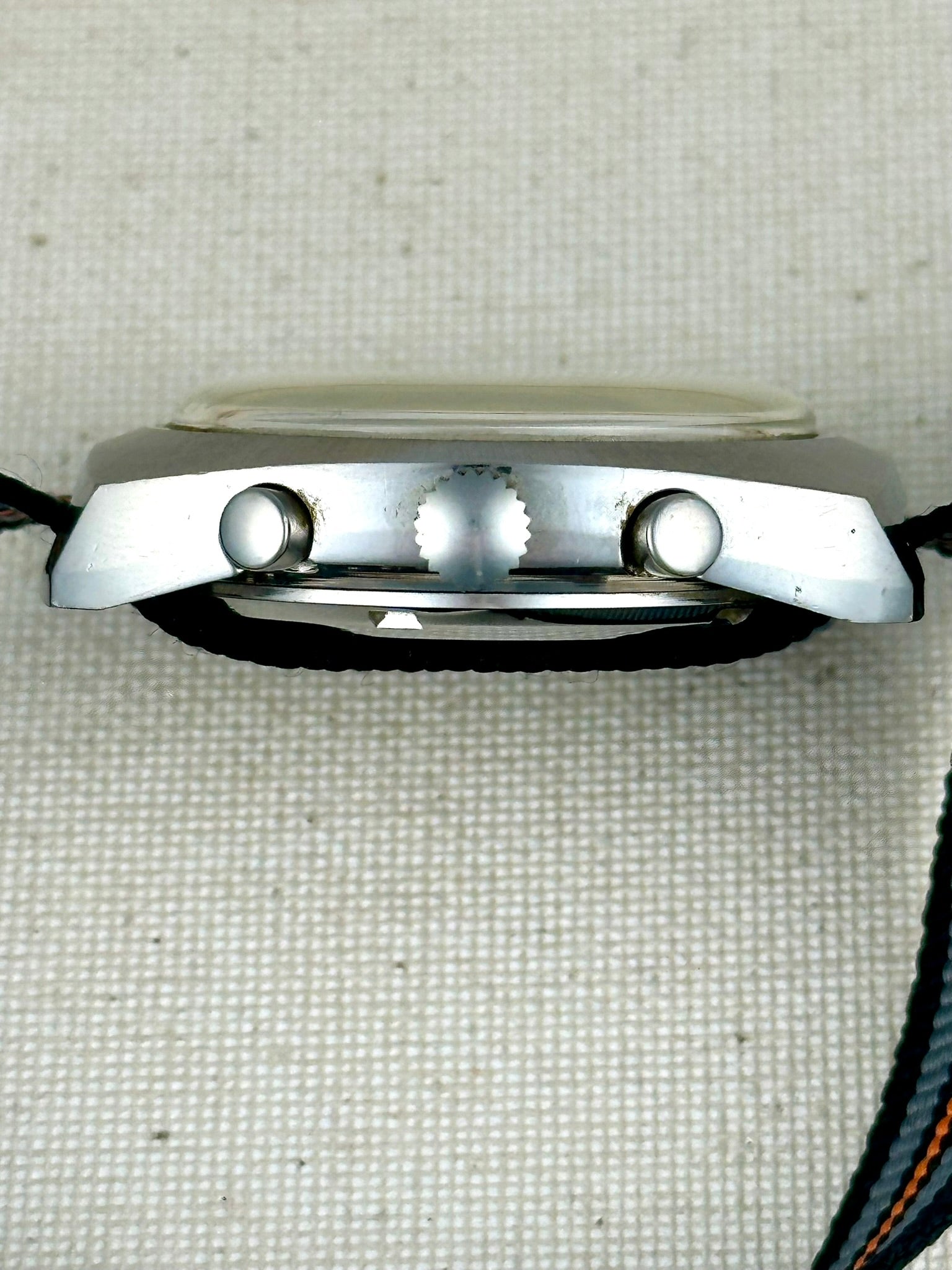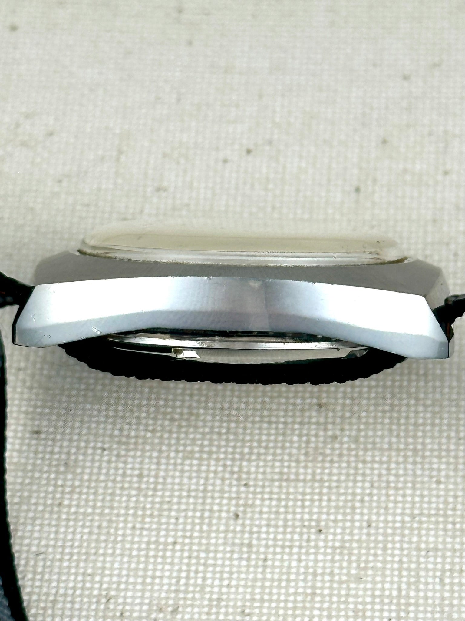 Very dramatic dial with beautiful clean lines and perfect lume plots.